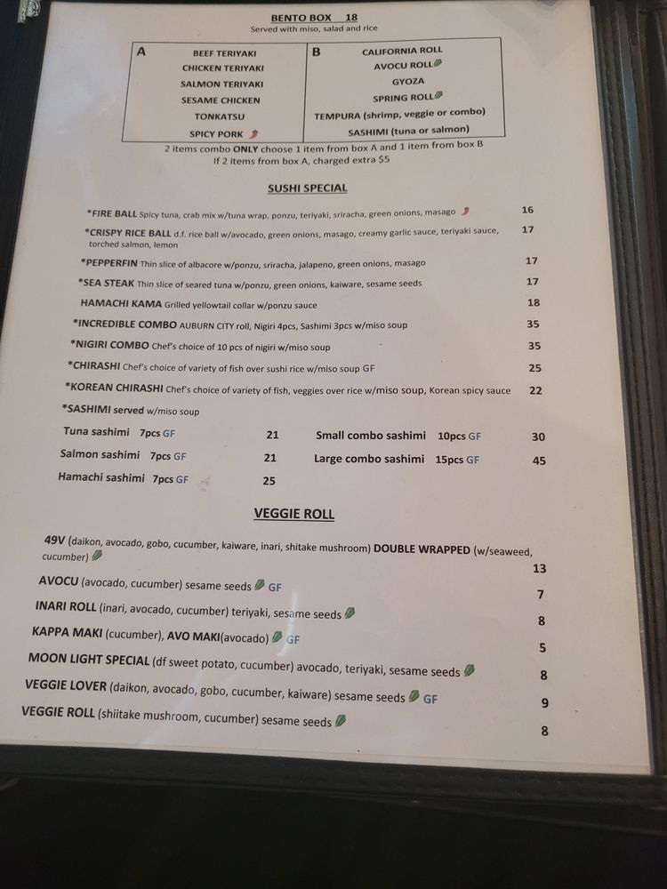 Introducing Jinme Ramen & Sushi Bar, a casual and trendy spot in Auburn, CA offering a fusion of Korean-inspired dishes, sushi, and ramen. Known for its fresh and delicious food, Jinme also caters to vegetarians and vegans, making it a versatile dining option. Customer reviews rave about the exceptional service and complimentary treats, showing the care and attention to detail from the staff. The menu boasts a variety of options, from spicy ramen bowls with customizable spice levels to flavorful sushi rolls like The Reggae and The JLO. Standout dishes include the Tonkotsu ramen with braised pork belly and the Grass Valley roll with shrimp, crab, and teriyaki glaze. Whether dining in for a date night or grabbing takeout, Jinme Ramen & Sushi Bar promises a memorable and delicious experience.